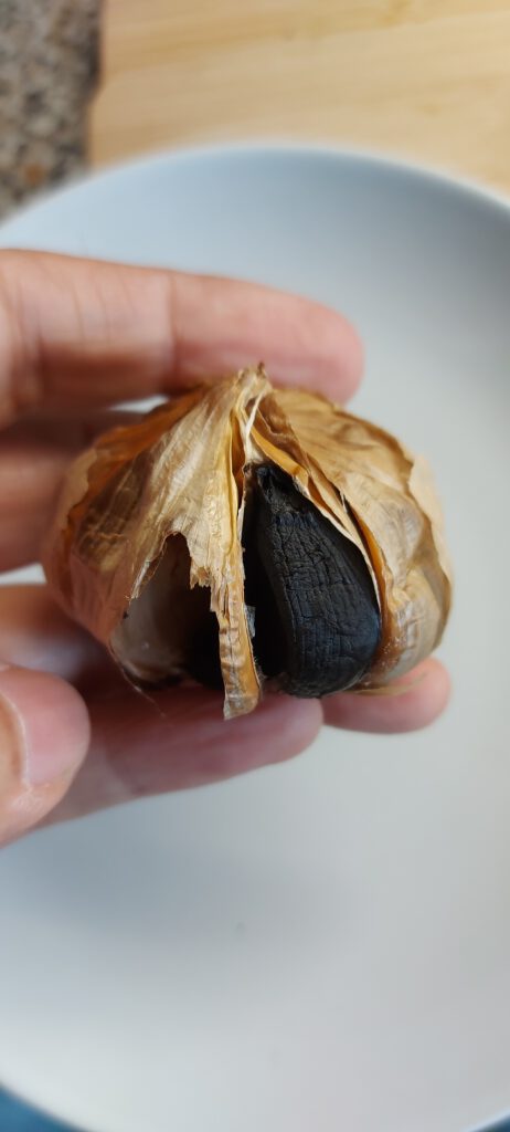 Yes, it worked! Actually very easy to make. It just takes a long time. And no, it is not fermented. It’s some sort of chemical reaction. My recipe? Wrap a whole unpeeled garlic bulb in aluminum foil. Then wrap another layer of aluminum foil around it. Put it in the food dehydrator (or oven?) for 9 days (yes, really) at 70 degrees Celsius.